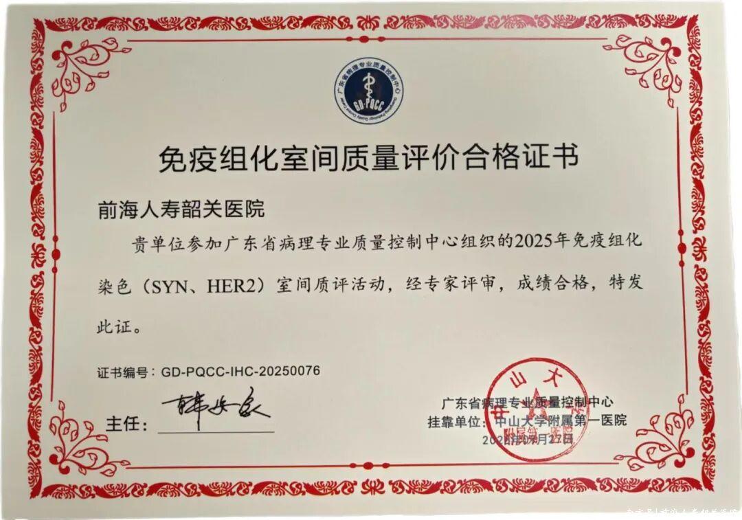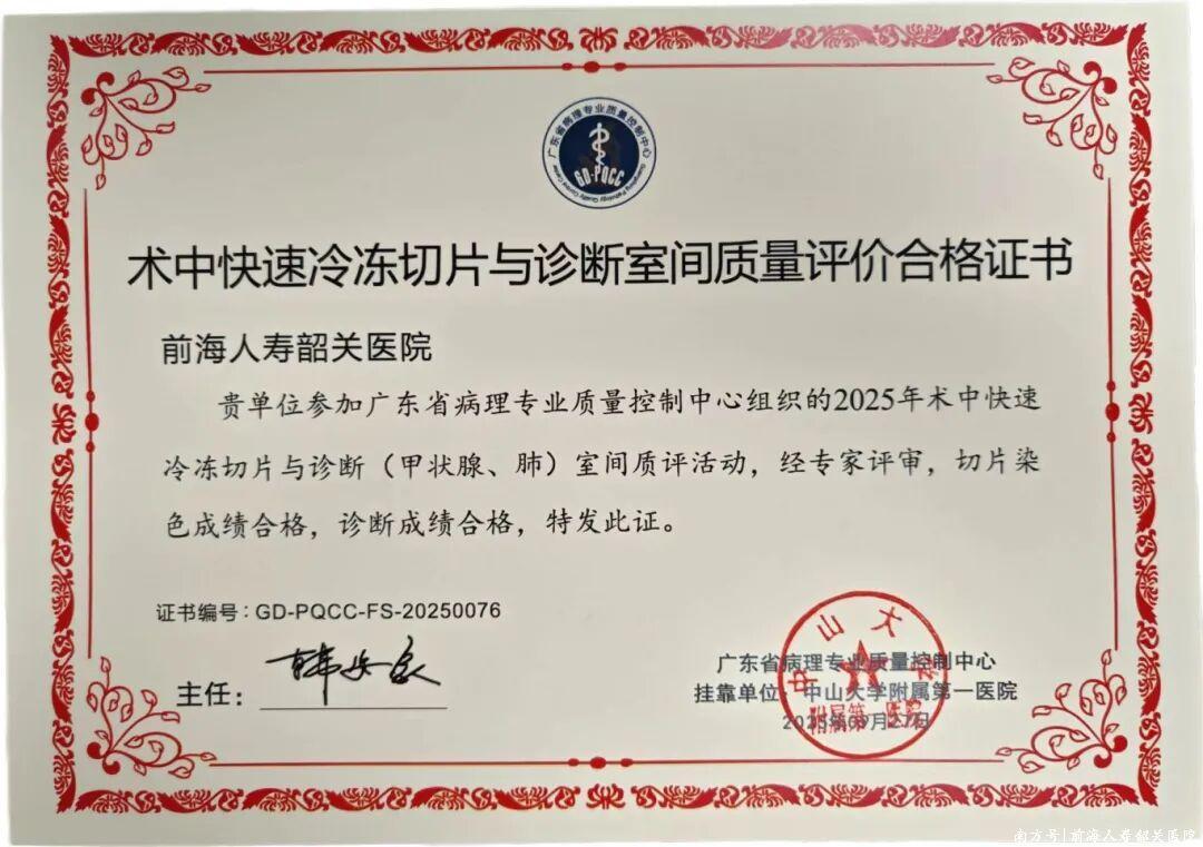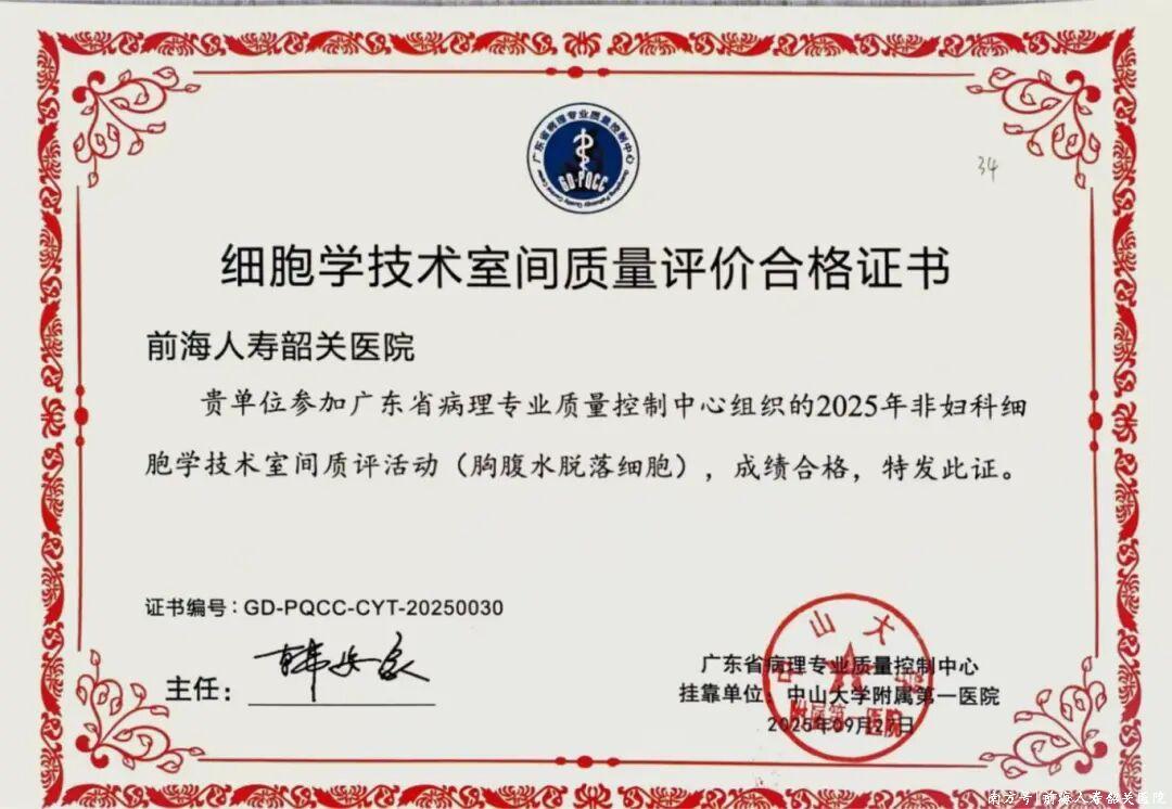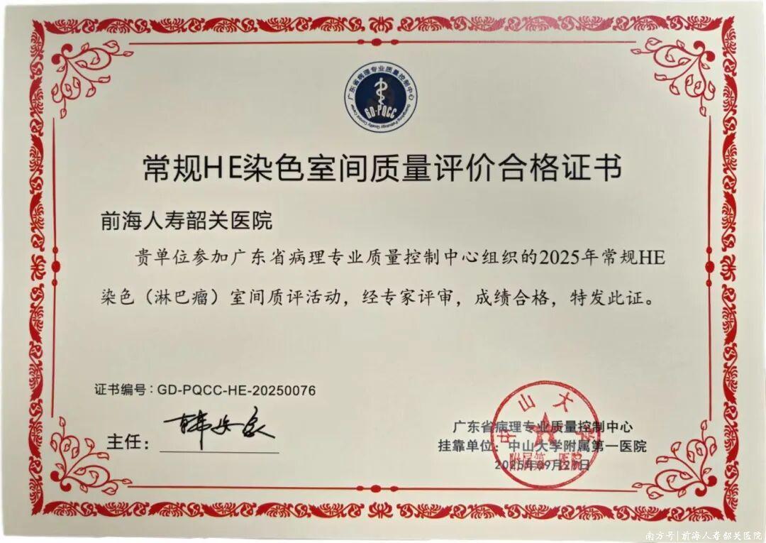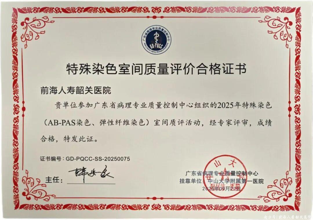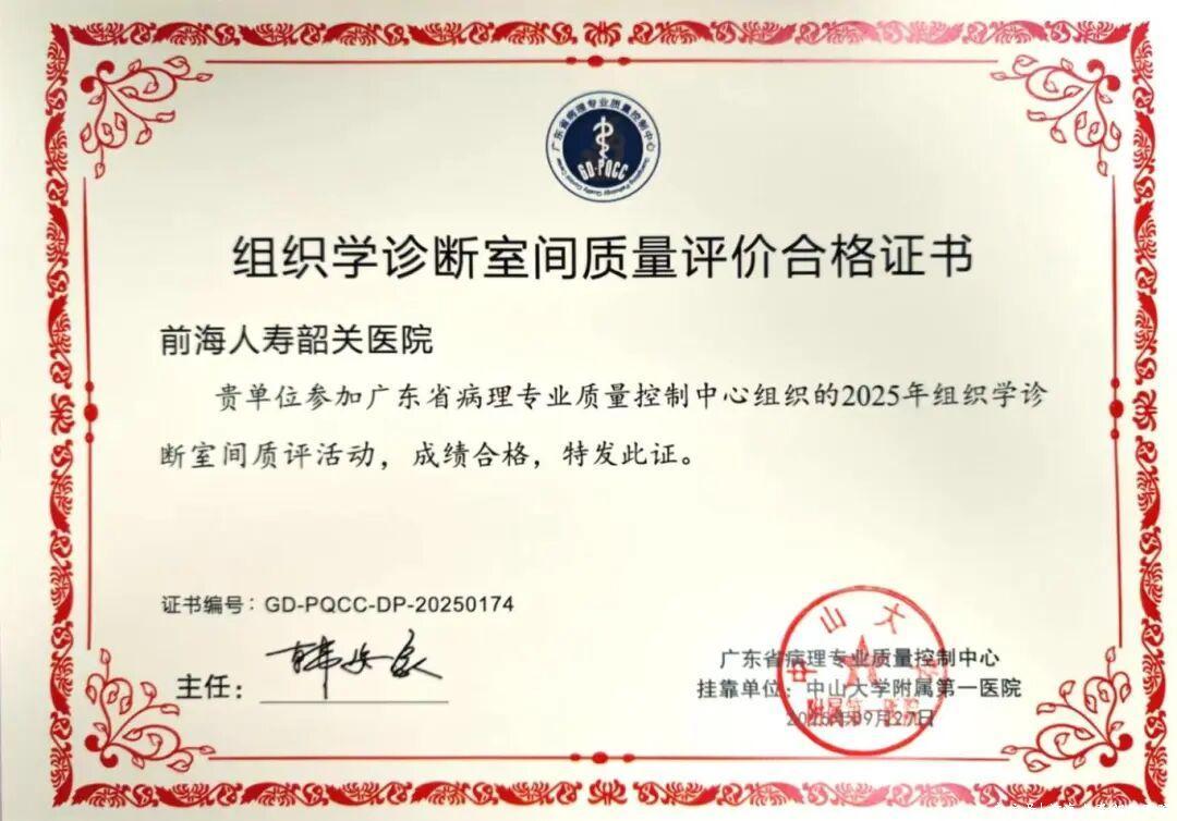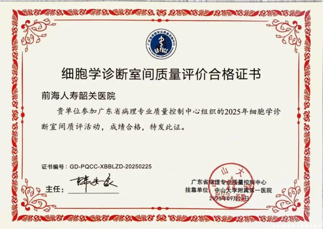 近日,广东省病理专业质量控制中心发布2025年度病理专业室间质量评价结果,前海人寿韶关医院病理科所有参评共7个项目均顺利通过考核,获省级质控认证证书。本次考评覆盖全省近300家医疗机构,这一成果既是对科室日常诊疗规范性的肯定,也标志着我院病理科在病理诊断精准度与标准化建设上已形成稳定可靠的服务能力。继2024年同类评价取得良好成绩后,这是科室质量提升的又一扎实进展。